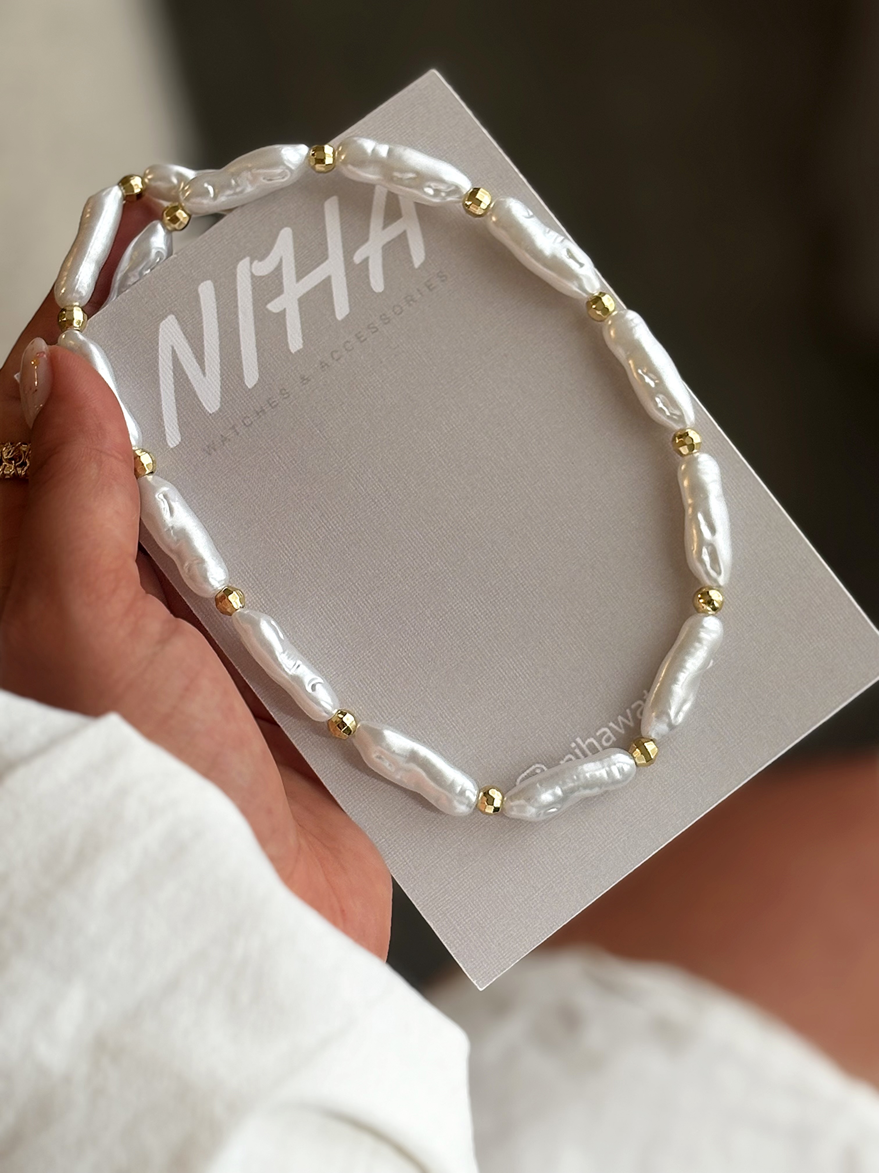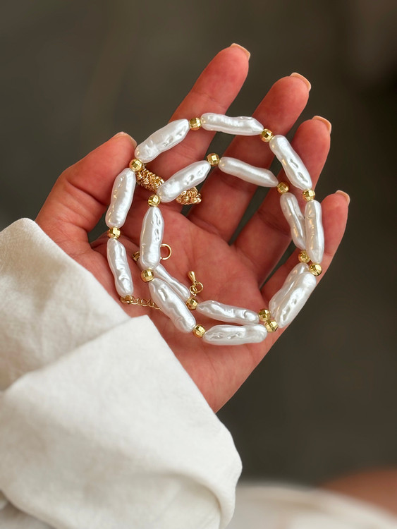 گردنبند مرواریدی زنانه با مهرههای نامنظم سفید و فواصل طلایی، جلوهای خاص و طبیعی دارد. این اکسسوری لوکس با لباسهای رسمی و روزمره هماهنگ میشود و انتخابی عالی برای هدیه دادن است. طراحی منحصربهفرد آن، زیبایی و ظرافت را به استایل شما میافزاید و در دسته زیورآلات پرطرفدار قرار میگیرد.