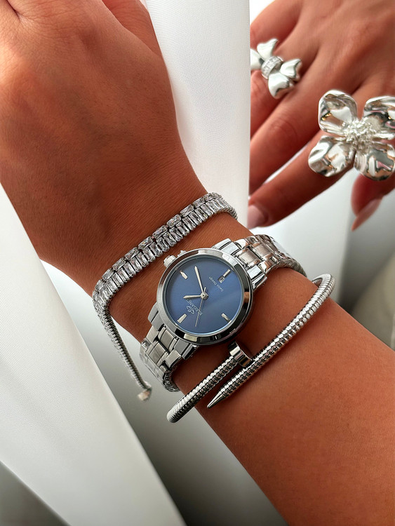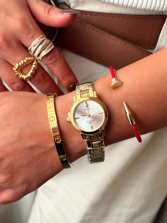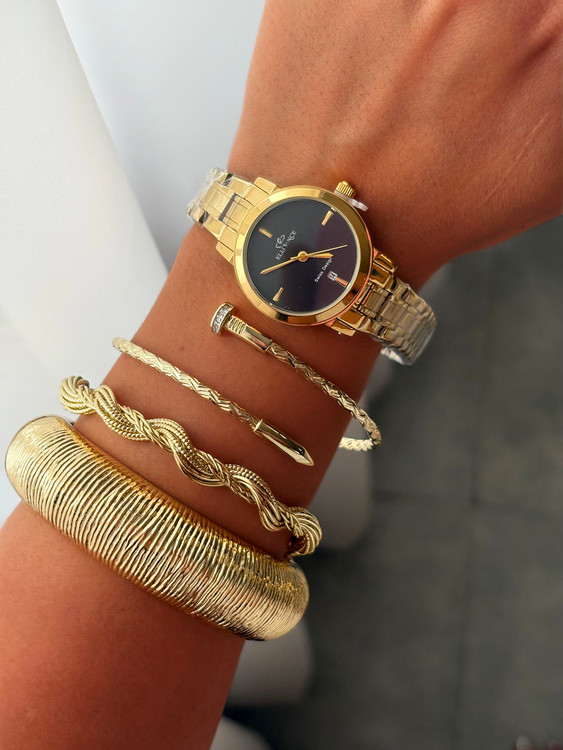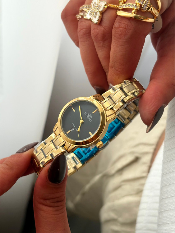 ساعت زنانه الگانس با رنگهای نقرهای، طلایی و صفحههای سرمهای، مشکی و سفید، انتخابی لوکس و چندمنظوره برای استایلهای مختلف است.