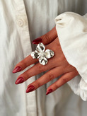 انگشتر زنانه با طراحی گلدار و جلوهای نقرهای، انتخابی خاص برای بانوان خوشسلیقه و علاقهمند به جواهرات هنری است. فرم گل با جزئیات برجسته و مرکز بافتدار، جلوهای لطیف و چشمنواز به دستان شما میبخشد. ساختهشده از متریال باکیفیت، ضد حساسیت و رنگ ثابت، مناسب برای استفاده روزمره و مجالس رسمی است. ترکیب آن با مانیکور رنگارنگ و استایلهای خلاقانه، این انگشتر را به گزینهای عالی برای هدیه دادن در مناسبتهای خاص و تکمیل استایل شخصی تبدیل کرده است.
