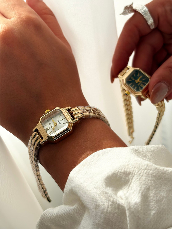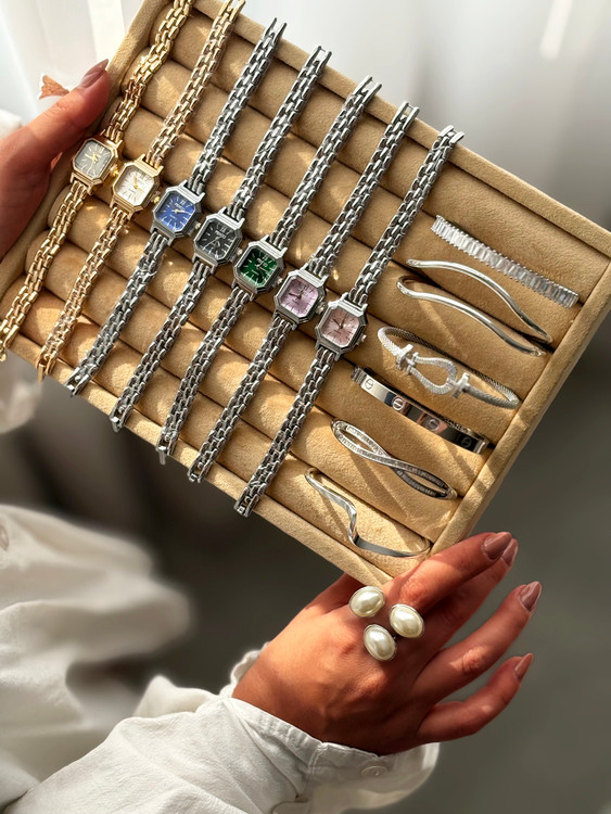 ساعت زنانه فنسی با طراحی مستطیلی و رنگبندیهای متفاوت، جلوهای لطیف و مدرن به استایل شما میبخشد. بند فلزی نقرهای و طلایی با ساختار زنجیری، علاوه بر دوام بالا، راحتی در استفاده روزمره را فراهم میکند. صفحه ساده با نشانگرهای مینیمال و قاب براق، ترکیبی از زیبایی و عملکرد را ارائه میدهد. این ساعت با موتور کوارتز دقیق و متریال ضد حساسیت، مناسب برای بانوانی است که به دنبال اکسسوریهای ظریف، کاربردی و قابل ست با استایلهای مختلف هستند. انتخابی عالی برای هدیه دادن در مناسبتهای خاص.