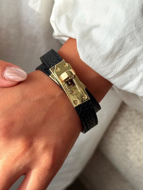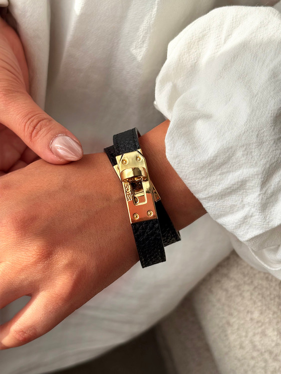 دستبند چرمی زنانه هرمس با طراحی لوکس و قفل طلایی نمادین، ترکیبی از اصالت فرانسوی و استایل مدرن را ارائه میدهد. بند چرمی مشکی با بافت ظریف و قفل فلزی الهامگرفته از قفل کیفهای کلاسیک Hermès، جلوهای خاص و قابلتوجه دارد. ساختهشده از متریال باکیفیت و ضد حساسیت، این مدل مناسب استفاده روزمره و مجالس رسمی است. طراحی مینیمال و قابلست با انواع لباسها، آن را به انتخابی عالی برای بانوان خوشسلیقه و هدیهای خاص در مناسبتهایی مثل تولد، سالگرد یا روز زن تبدیل میکند.