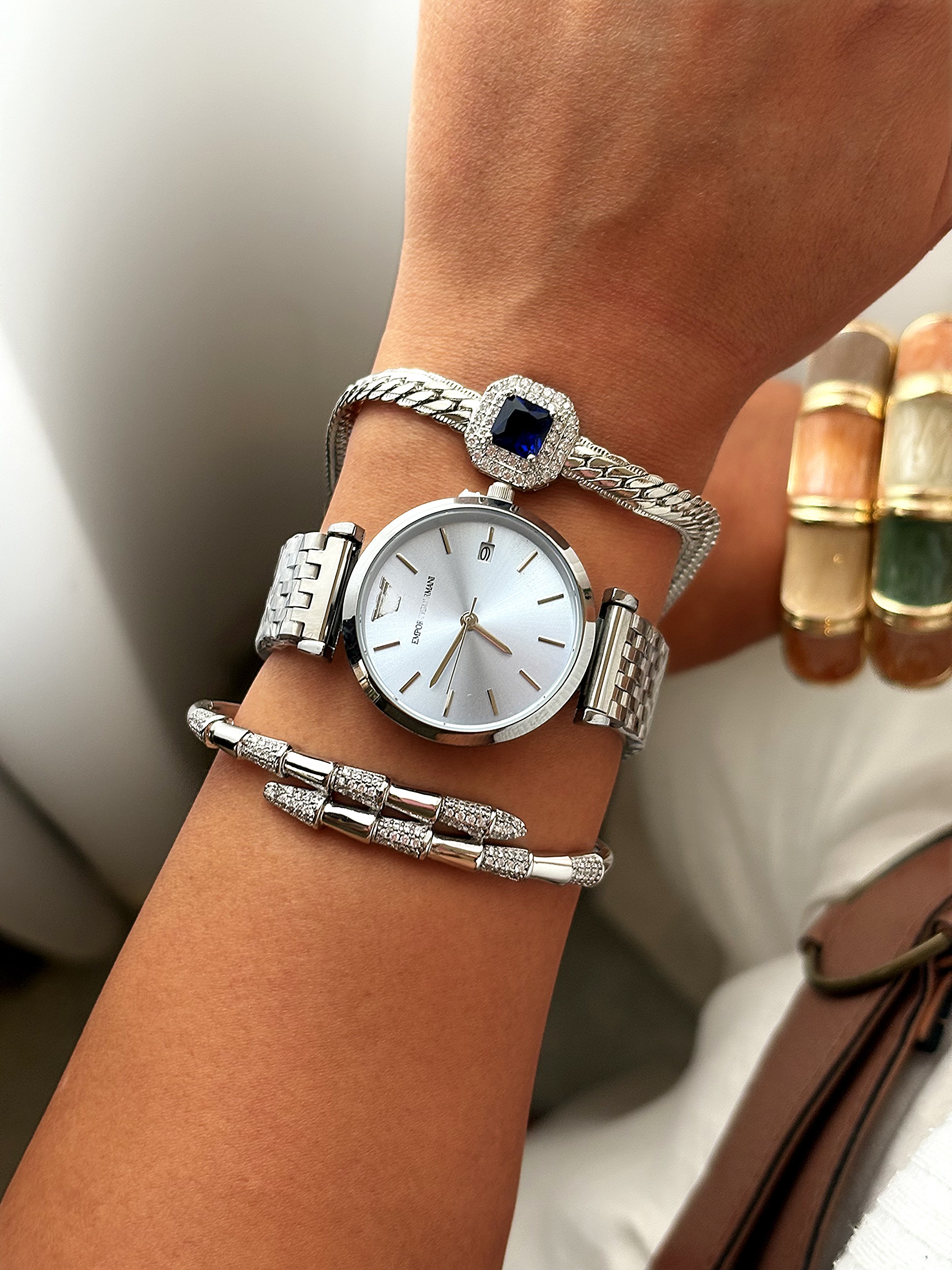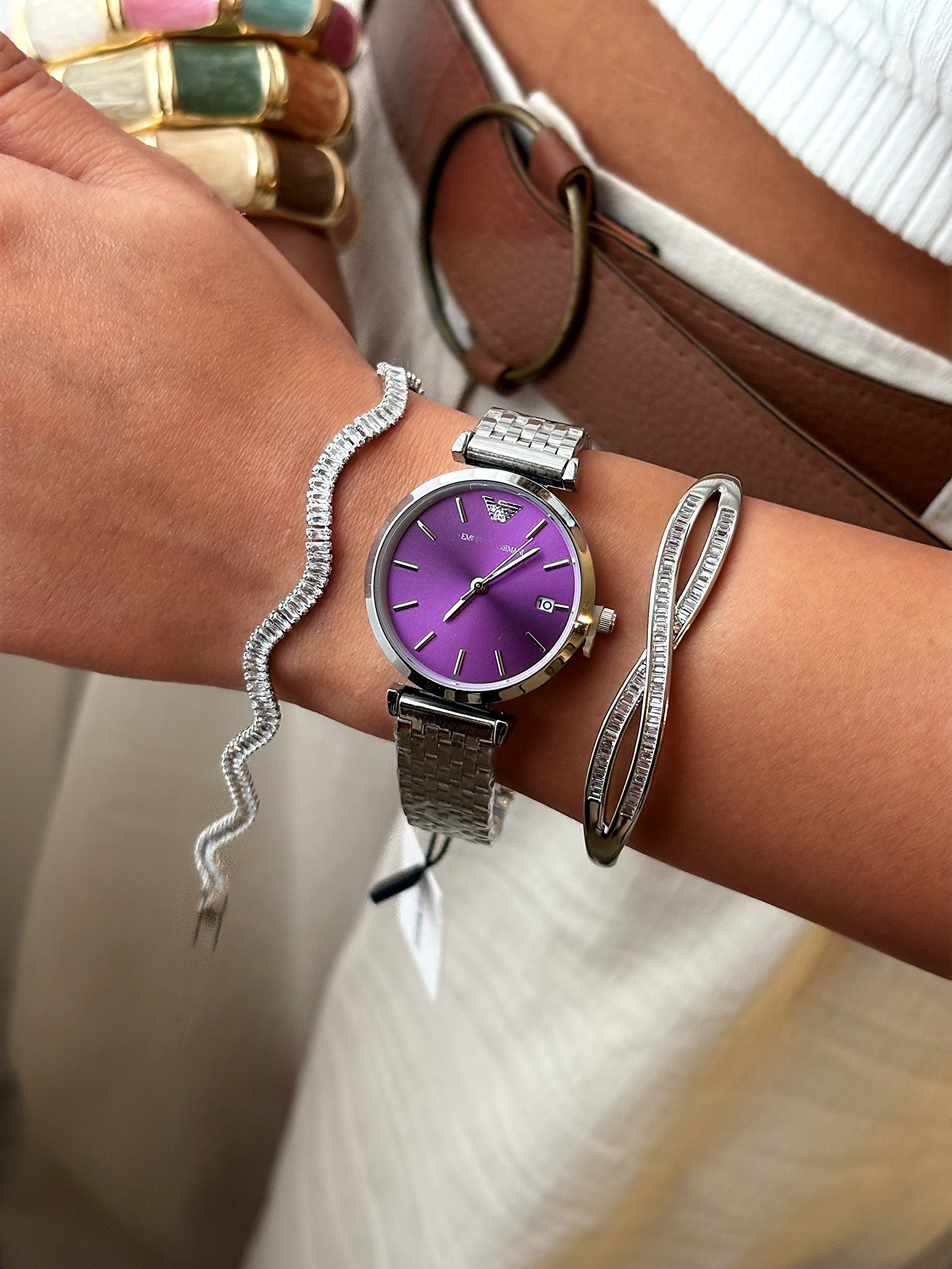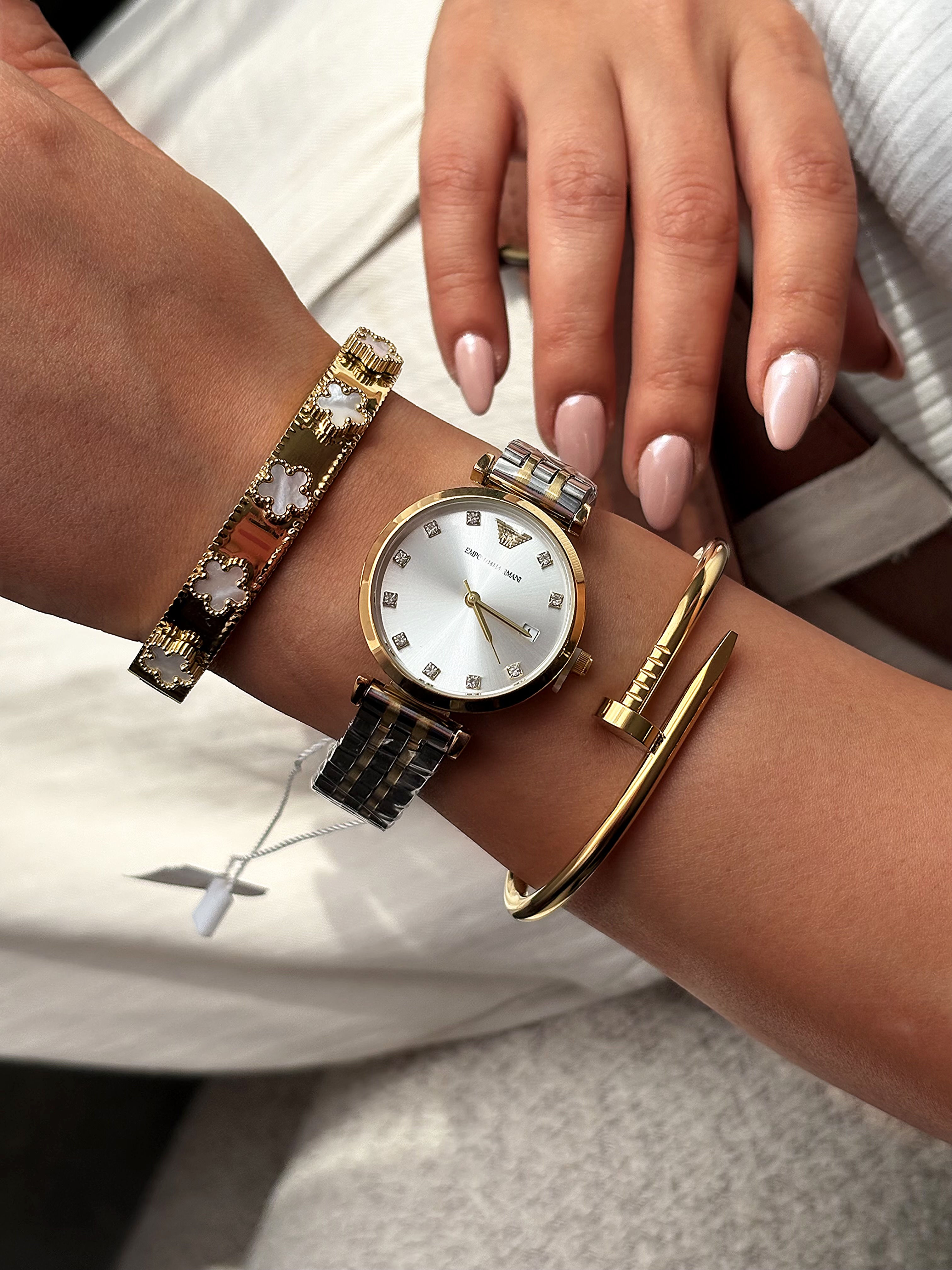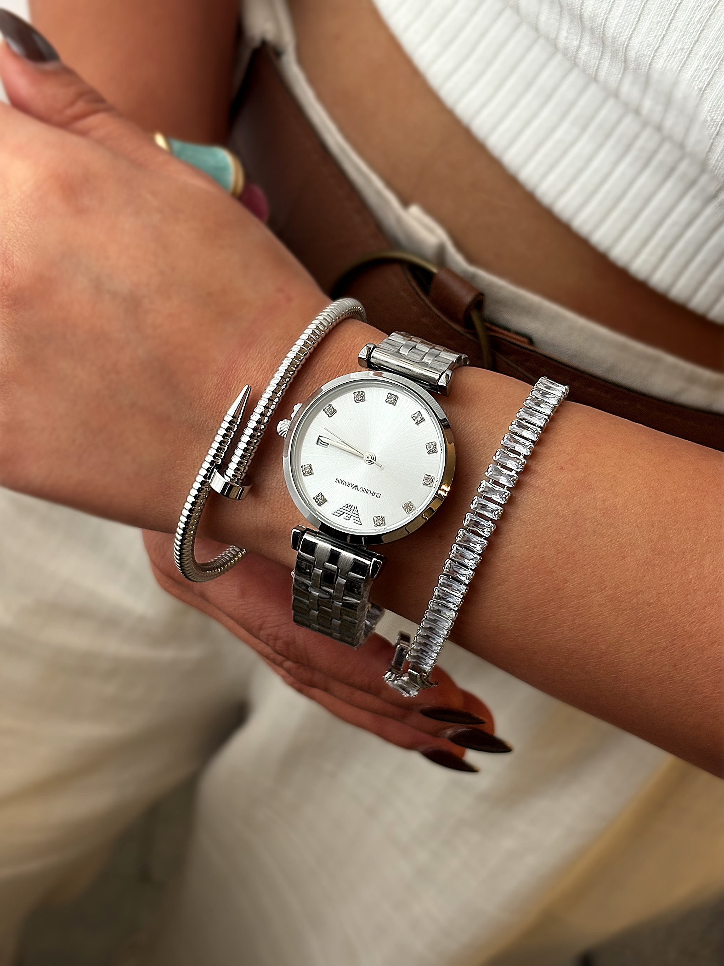 ساعت زنانه استیل آرمانی با رنگنبندی متنوع صفحه مناسب برای هر سلیقهای است. بند، بدنه و درب پشت استیل آن ثبات رنگ را برای شما تضمین می کند.