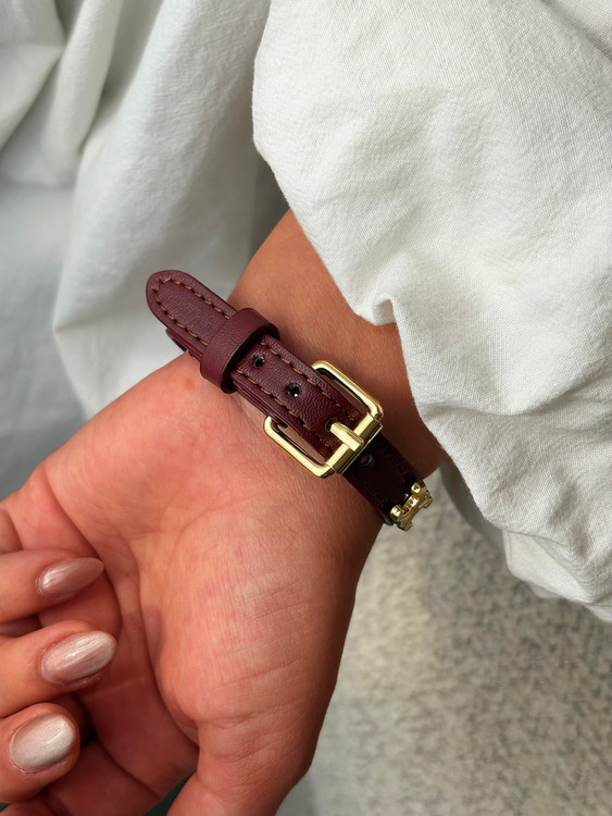 دستبند زنانه سلین با طراحی چرمی و تزئین فلزی طلایی نمادین، ترکیبی از جسارت مدرن و ظرافت مینیمال را به استایل شما میبخشد. بند چرمی قرمز یا زرشکی با بافت لطیف، در کنار قطعهی مرکزی با فرم هندسی خاص، امضای زیباییشناسی برند Celine را بهخوبی منعکس میکند. این مدل با قفل مقاوم و رنگ ثابت، برای استفاده روزمره و رسمی مناسب است. قابلست با لباسهای سفید، مشکی یا کرم و ساعتهای طلایی، انتخابی عالی برای بانوان خوشسلیقه و هدیهای خاص در مناسبتهایی مثل تولد، سالگرد یا روز زن محسوب میشود.