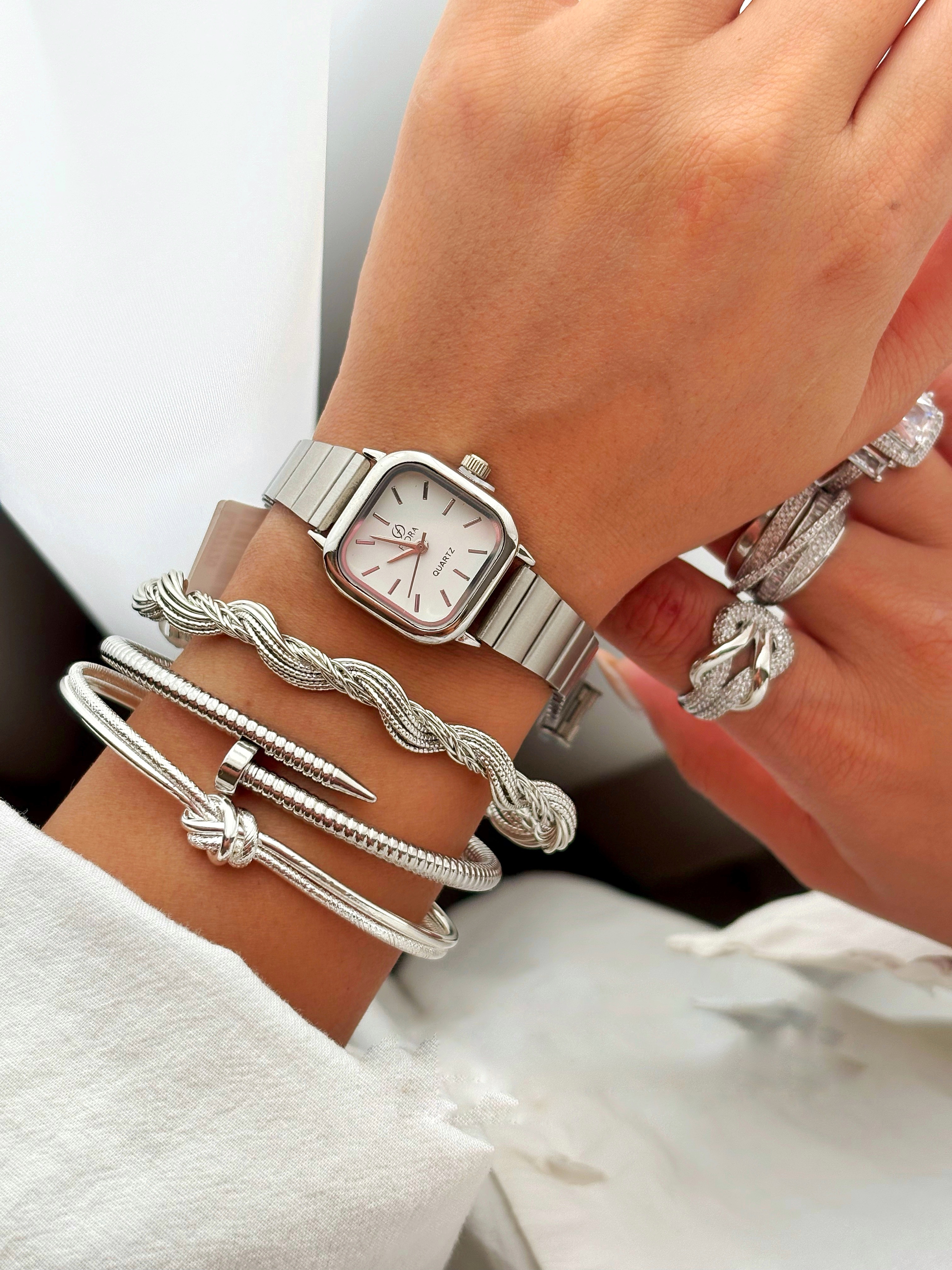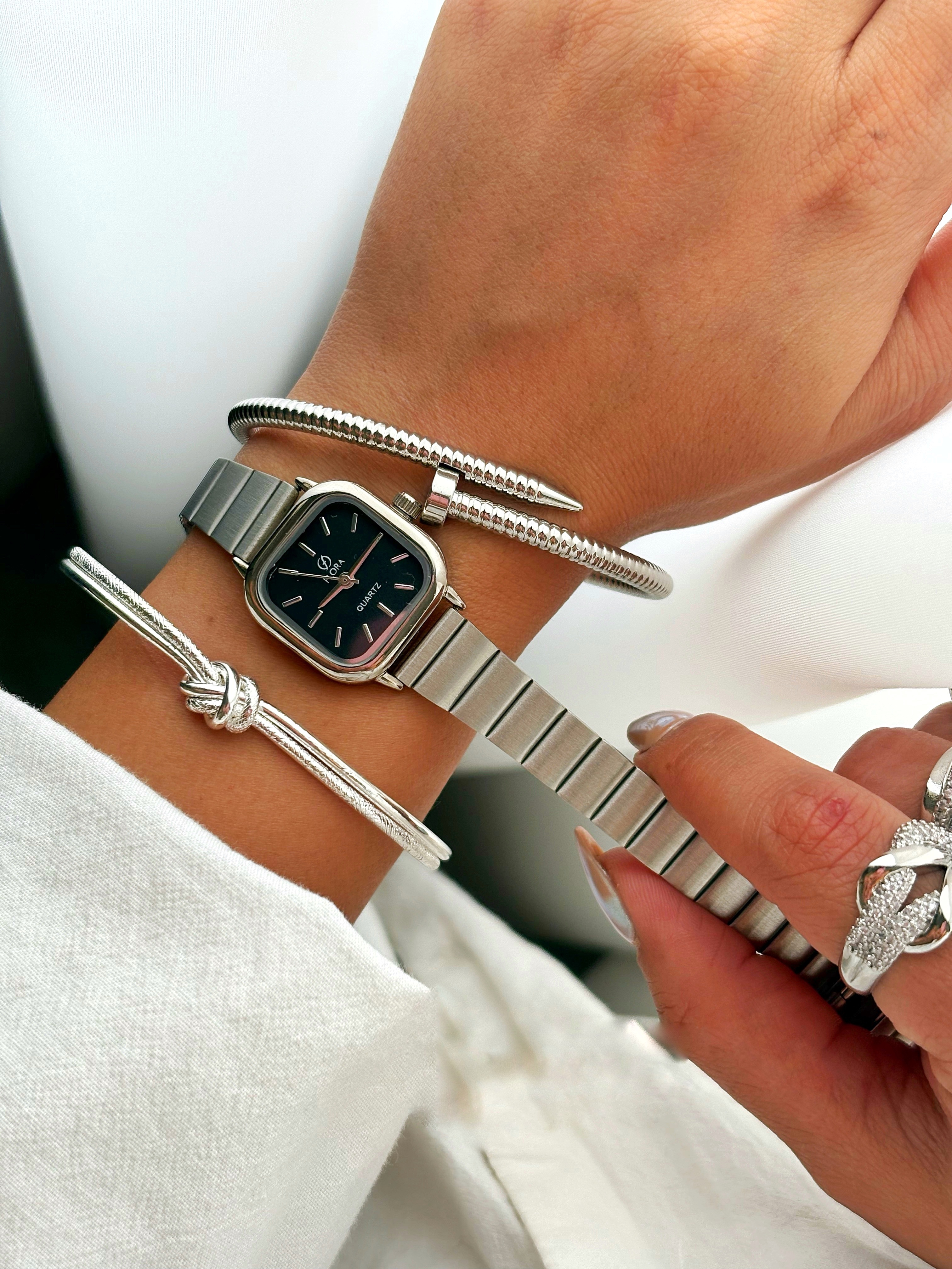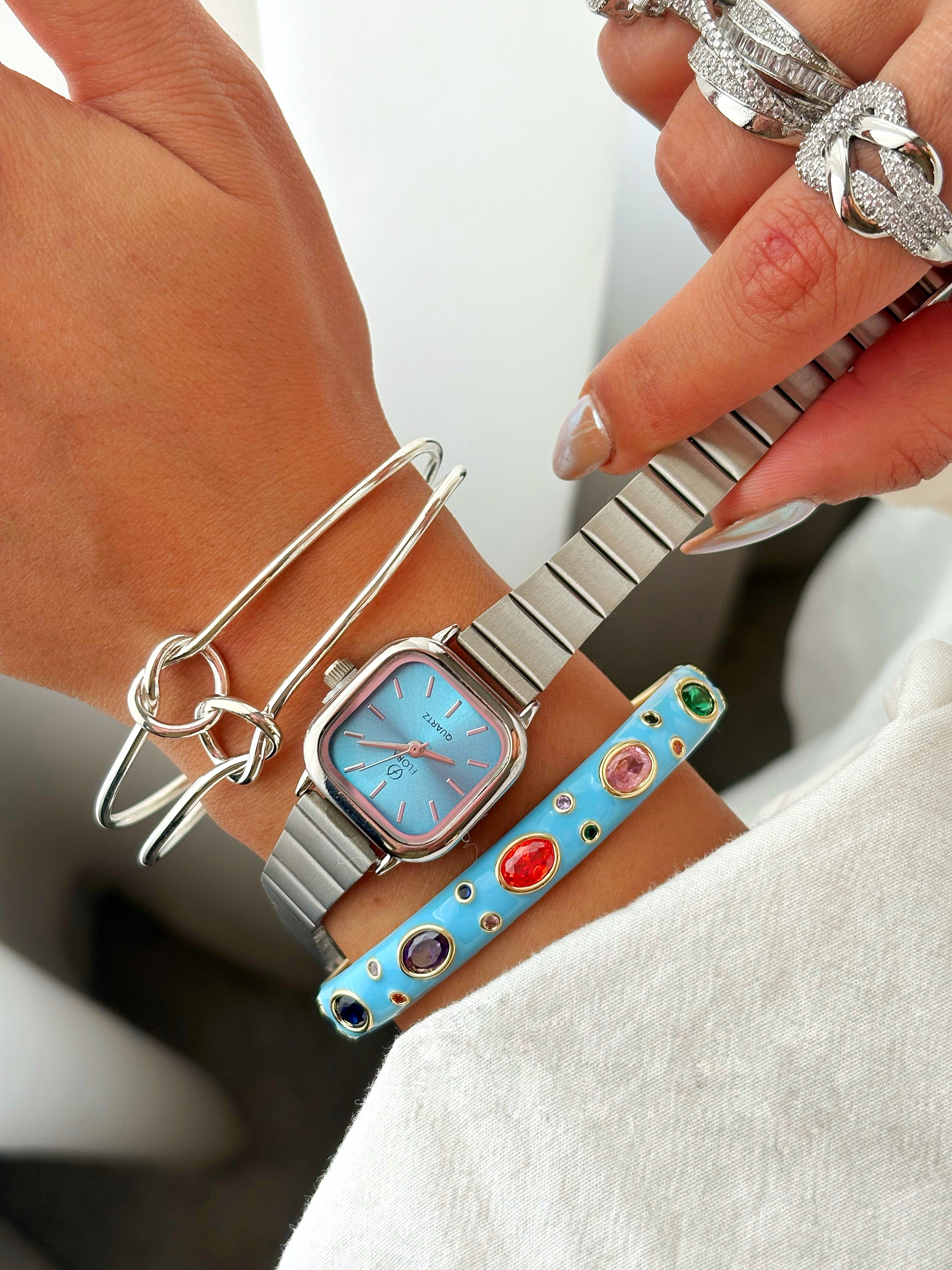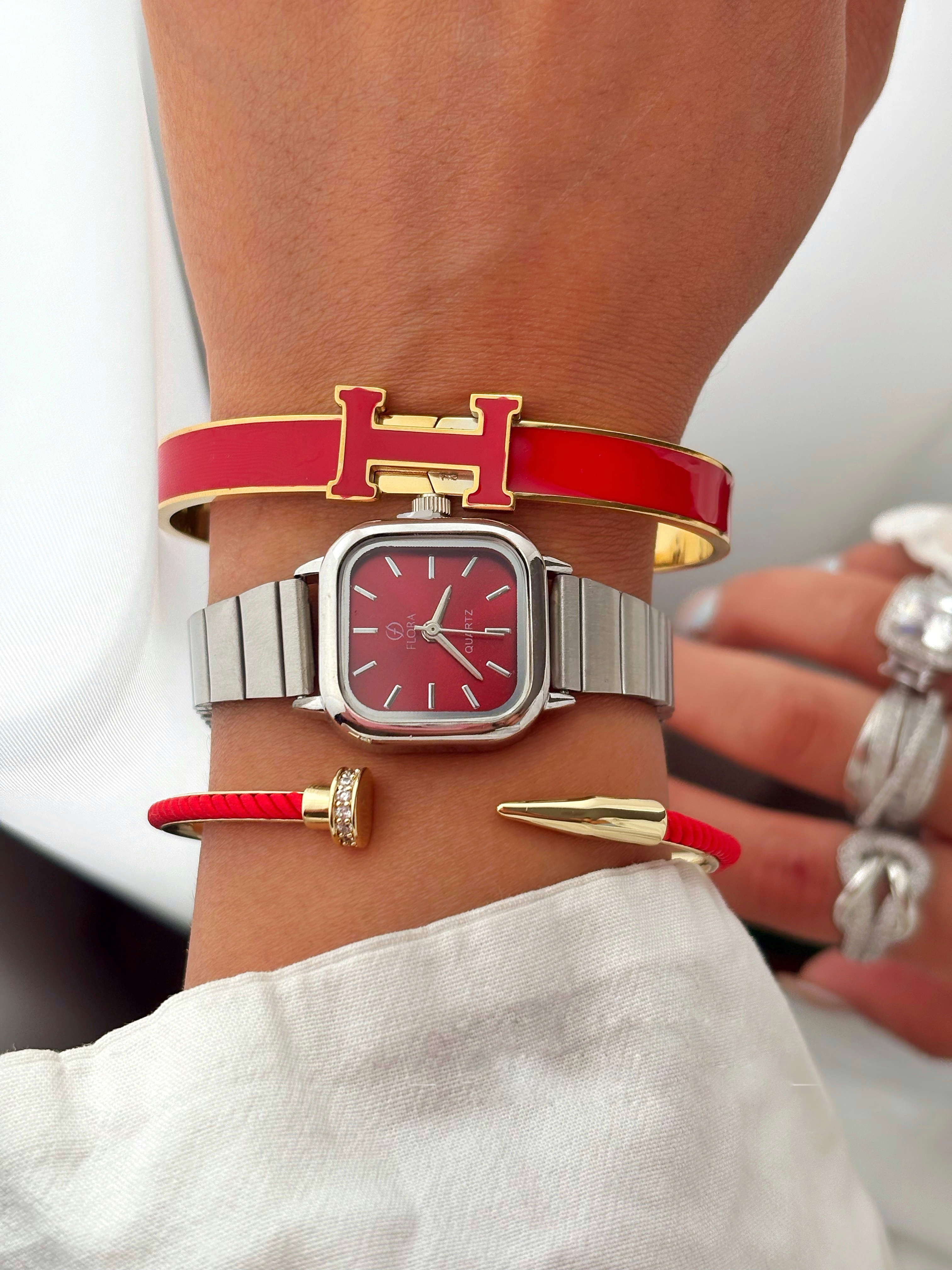 ساعت مچی زنانه فلورا مربعی بند کرکره‌ای