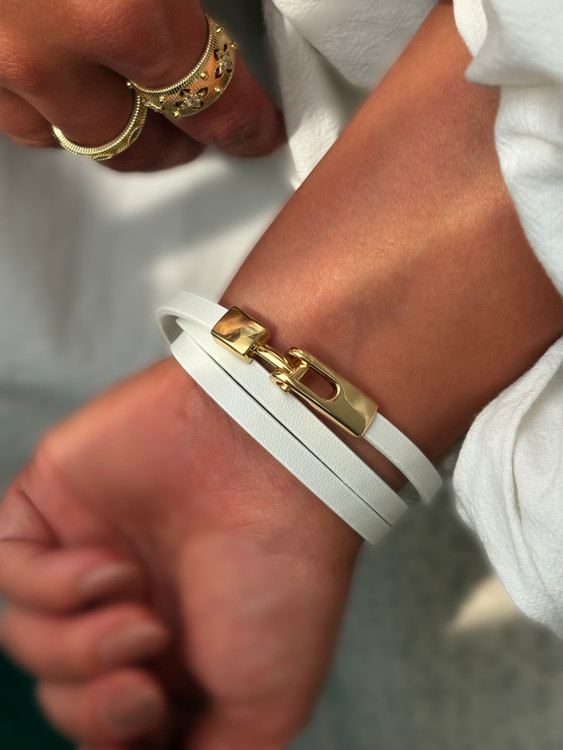 دستبند زنانه چرمی شنل با طراحی دوبل و لوگوی طلایی نمادین، ترکیبی از ظرافت فرانسوی و جسارت مدرن را به استایل شما میبخشد. ساختهشده از چرم طبیعی سفید با کیفیت بالا و جزئیات فلزی با رنگ ثابت، این مدل در برابر سایش و تغییر رنگ مقاوم است. لوگوی درهم Chanel با آبکاری طلایی، جلوهای لوکس و قابلتشخیص دارد. مناسب برای بانوانی که به اکسسوریهای برنددار و خاص علاقه دارند. قابلست با لباسهای سفید، مشکی یا طلایی و انتخابی عالی برای هدیه در مناسبتهایی مثل تولد، سالگرد یا روز زن محسوب میشود.