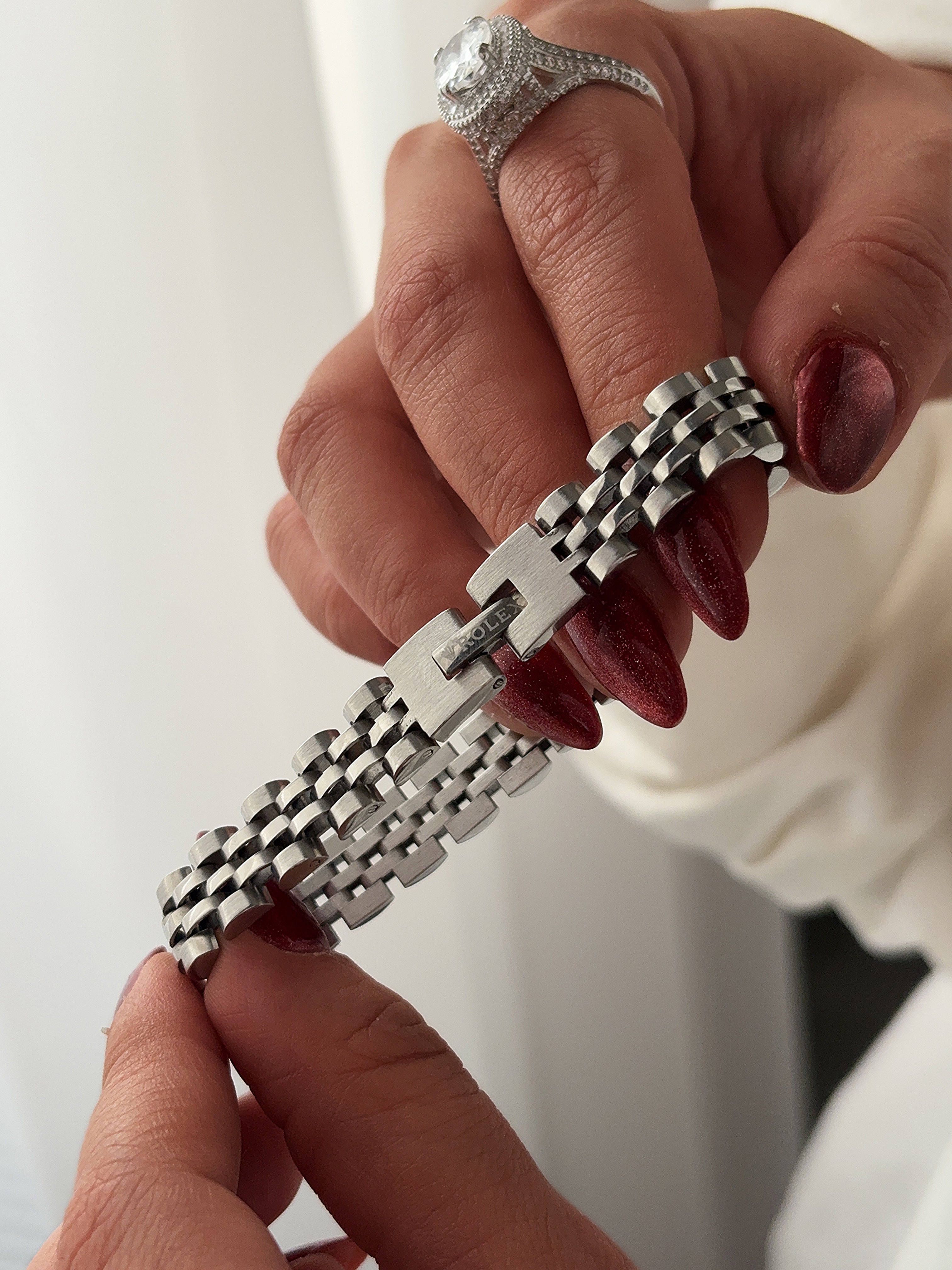 دستبند زنانه طرح رولکس با طراحی فلزی و قفل حکشده برند، ترکیبی از ظرافت کلاسیک و جلوهای لوکس را به استایل شما میبخشد. ساختهشده از آلیاژ مقاوم با پرداخت براق و بافت برسخورده، این مدل در برابر تغییر رنگ و سایش مقاوم است. قفل با حک برند Rolex، حس اصالت و کیفیت را القا میکند. مناسب برای بانوانی که به اکسسوریهای الهامگرفته از برندهای معتبر علاقه دارند. قابلست با ساعتهای استیل، لباسهای رسمی یا روزمره، و انتخابی عالی برای هدیه در مناسبتهایی مثل تولد، سالگرد یا روز زن محسوب میشود.