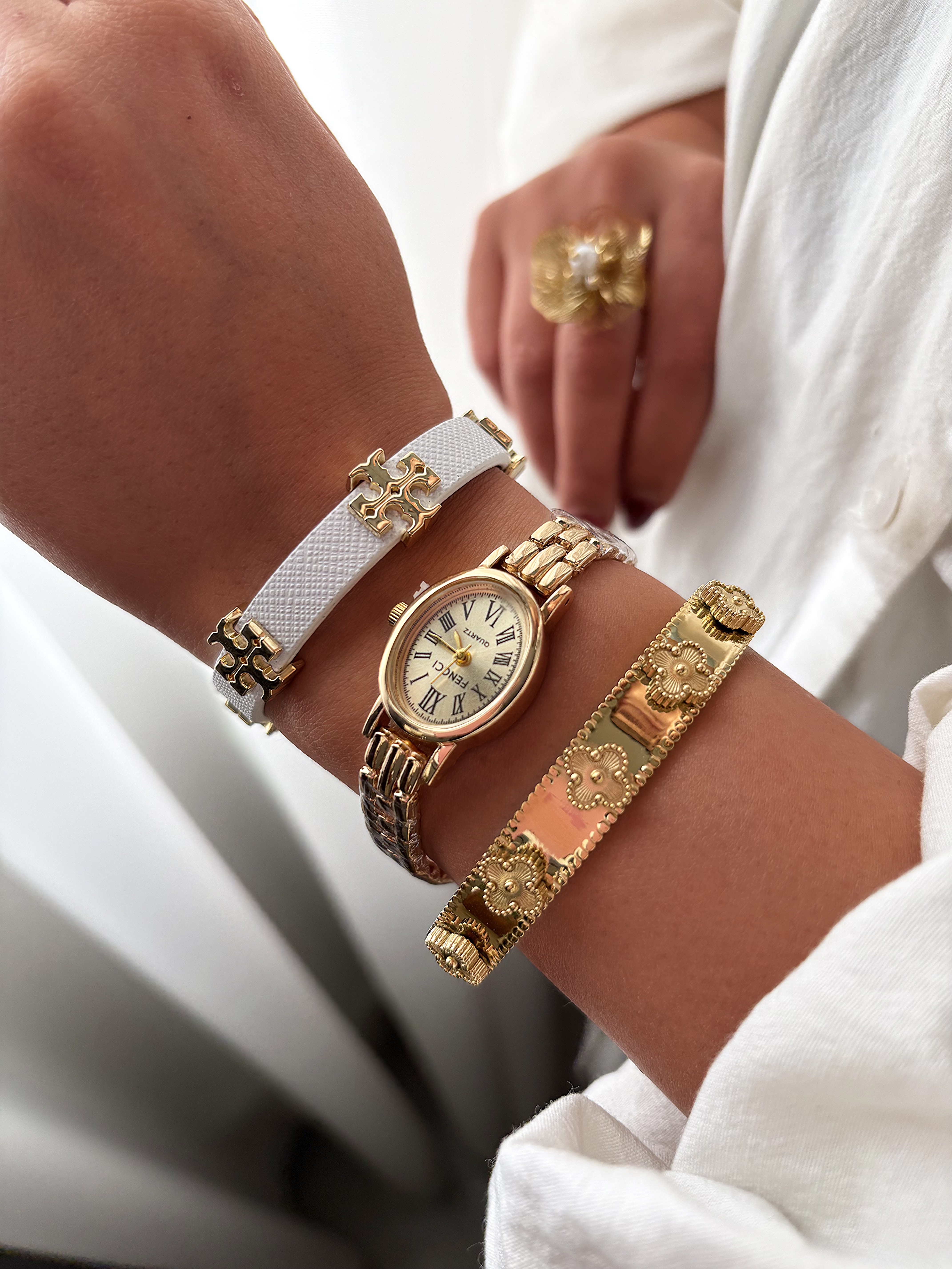 ساعت مچی زنانه برند فنسی با طراحی کلاسیک و بند استیل رنگ ثابت، انتخابی شیک و بادوام برای بانوانی است که به ظرافت و کیفیت اهمیت میدهند. صفحه سفید با اعداد رومی و قاب طلایی، جلوهای رسمی و چشمگیر دارد. بند فلزی ضدزنگ با رنگ ثابت، در برابر رطوبت و سایش مقاوم بوده و مناسب استفاده روزمره و مجالس رسمی است. موتور کوارتز با منبع انرژی باتری، دقت بالا و عملکرد قابلاعتماد را تضمین میکند. قابلست با دستبندهای چرمی یا فلزی و لباسهای سفید، مشکی یا طلایی، این ساعت گزینهای عالی برای هدیه در مناسبتهایی مثل تولد، سالگرد یا روز زن محسوب میشود.