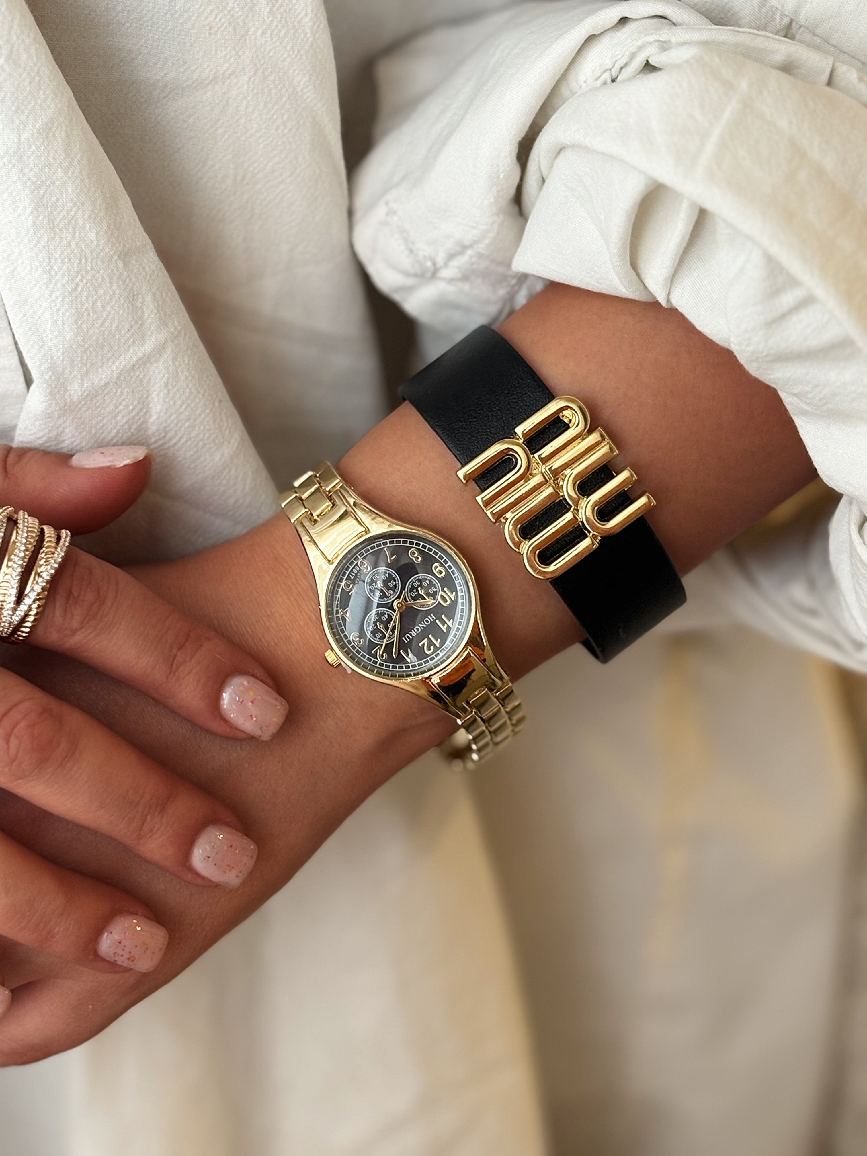 ساعت مچی زنانه برند هانگری با طراحی سهموتوره و بند استیل رنگ ثابت، انتخابی خاص برای بانوانی است که به استایل رسمی و مدرن علاقه دارند. قاب گرد با صفحه سفید و اعداد عربی، در کنار سه موتور تزئینی، جلوهای حرفهای و جذاب دارد. بند فلزی ضدزنگ با آبکاری مقاوم، در برابر رطوبت، سایش و تغییر رنگ پایدار بوده و مناسب استفاده روزمره و مجالس رسمی است. موتور کوارتز دقیق با منبع انرژی باتری، عملکرد قابلاعتماد را تضمین میکند. این مدل قابلست با دستبندهای نقرهای و لباسهای سفید، مشکی یا طوسی بوده و گزینهای عالی برای هدیه در مناسبتهایی مثل تولد، سالگرد یا روز زن محسوب میشود.