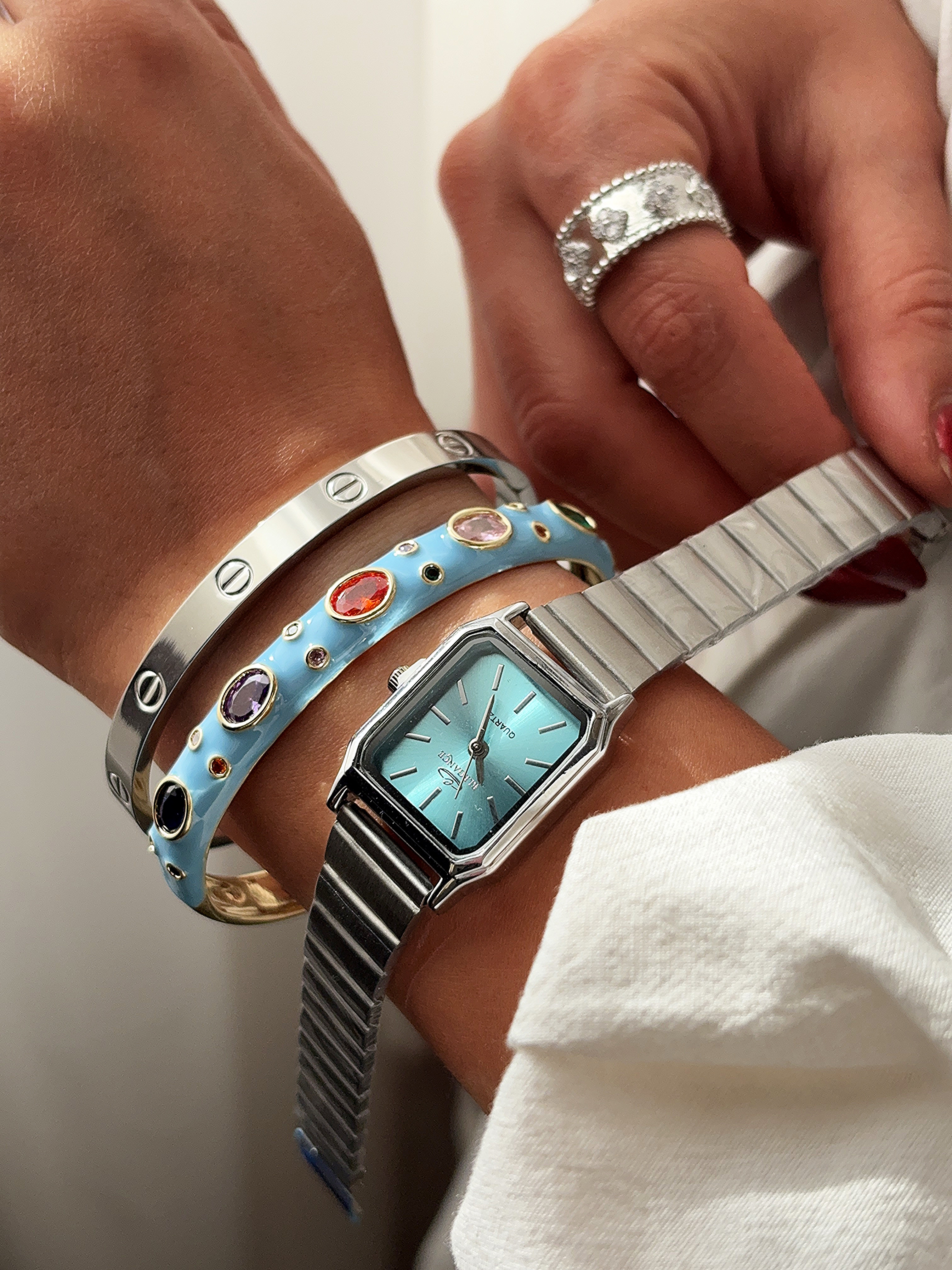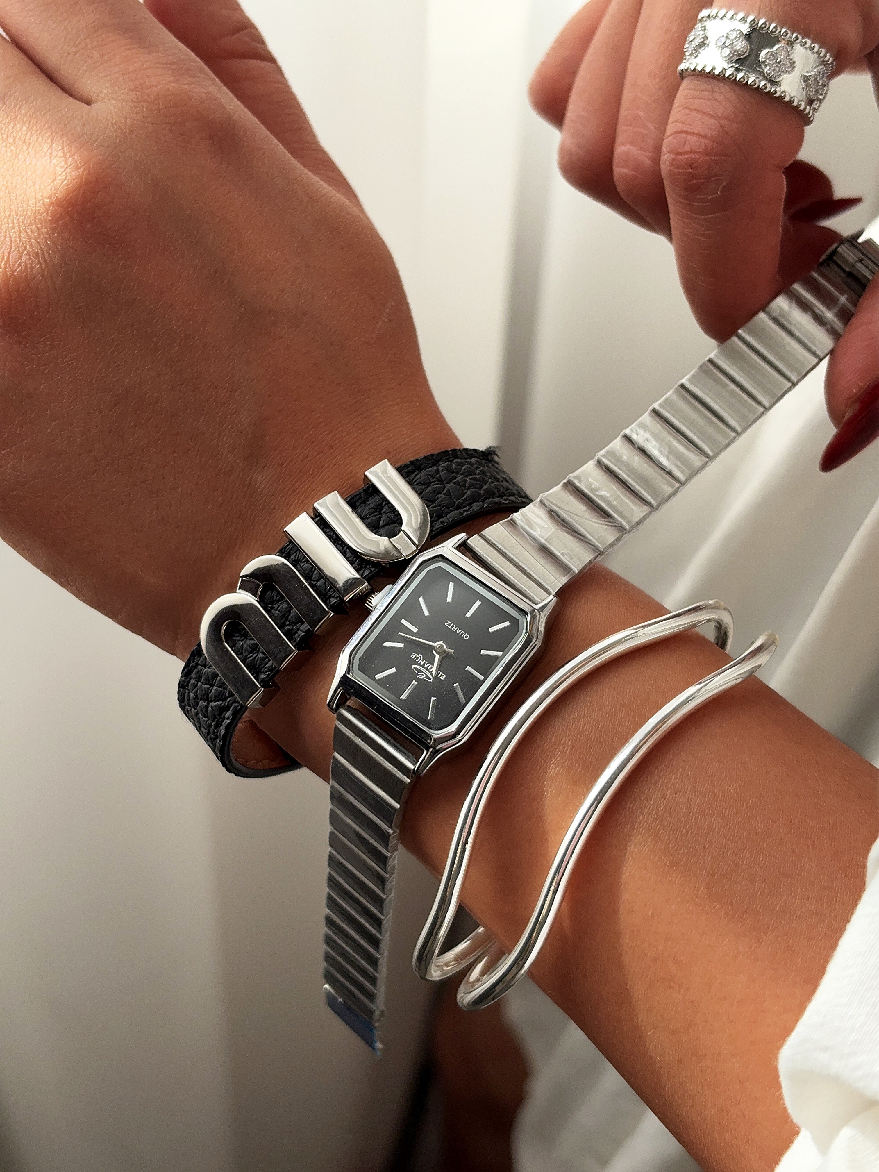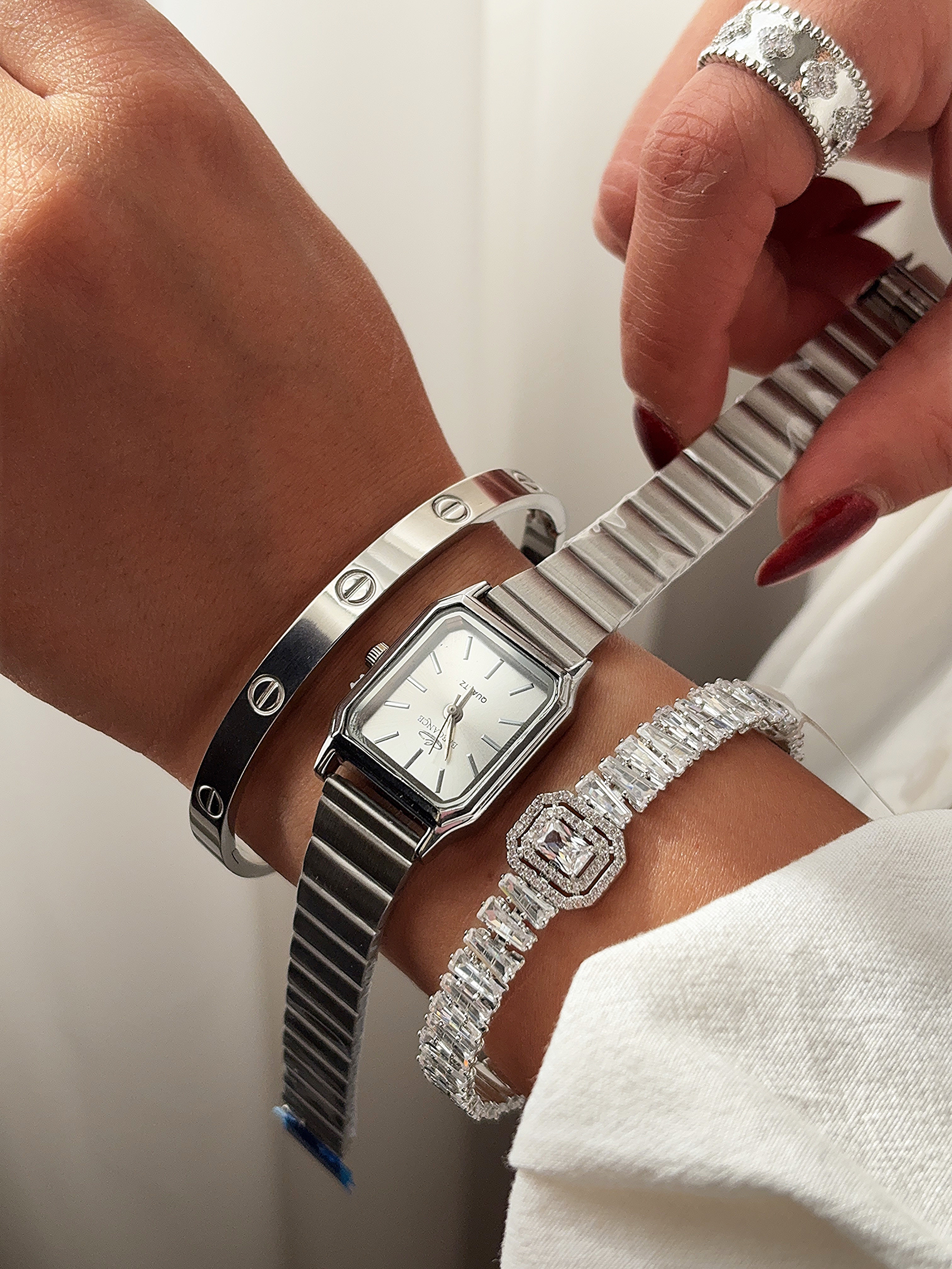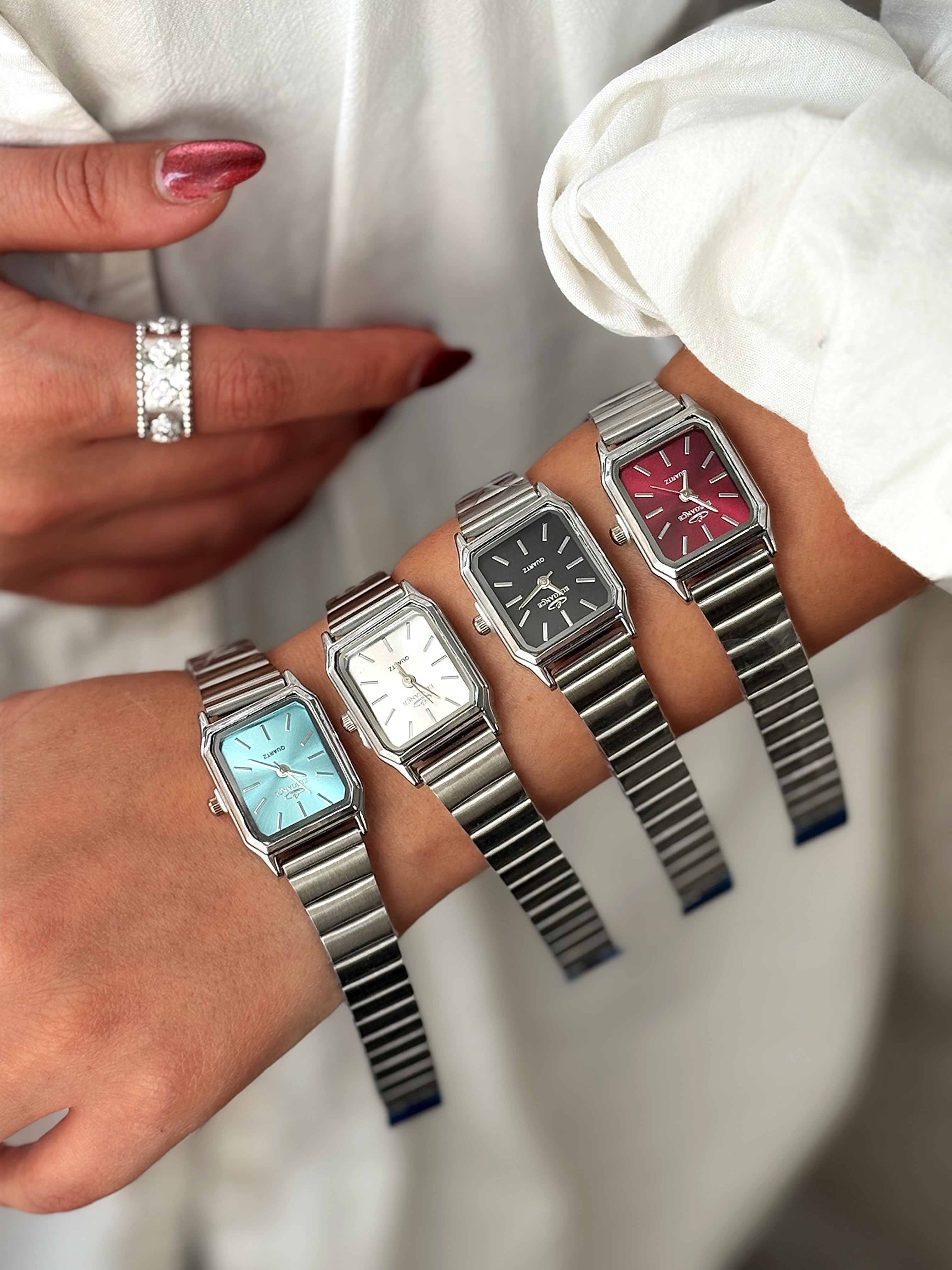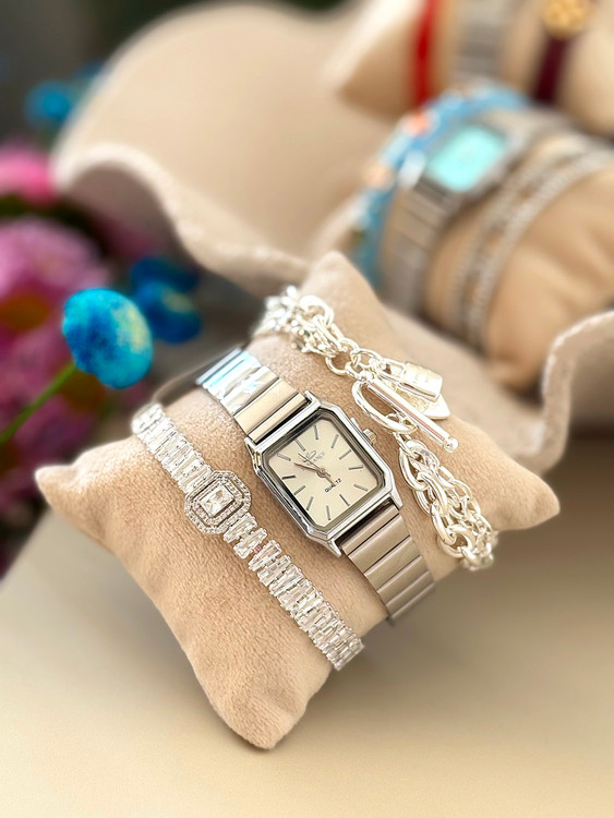 ساعت مچی زنانه الگانس با طراحی مستطیلی و بند فلزی نقرهای، انتخابی لوکس برای بانوان خوشاستایل است. صفحه مینیمال با نشانگرهای مشکی، جلوهای مدرن و کلاسیک ایجاد میکند. این ساعت با کیفیت ساخت بالا و دوام طولانی، مناسب استفاده روزمره و مجالس رسمی بوده و به راحتی با دستبندهای نگیندار و زیورآلات دیگر ست میشود. ساعت زنانه الگانس نه تنها یک ابزار کاربردی، بلکه اکسسوری مد روز برای تکمیل استایل شما در فروشگاه آنلاین محسوب میشود.