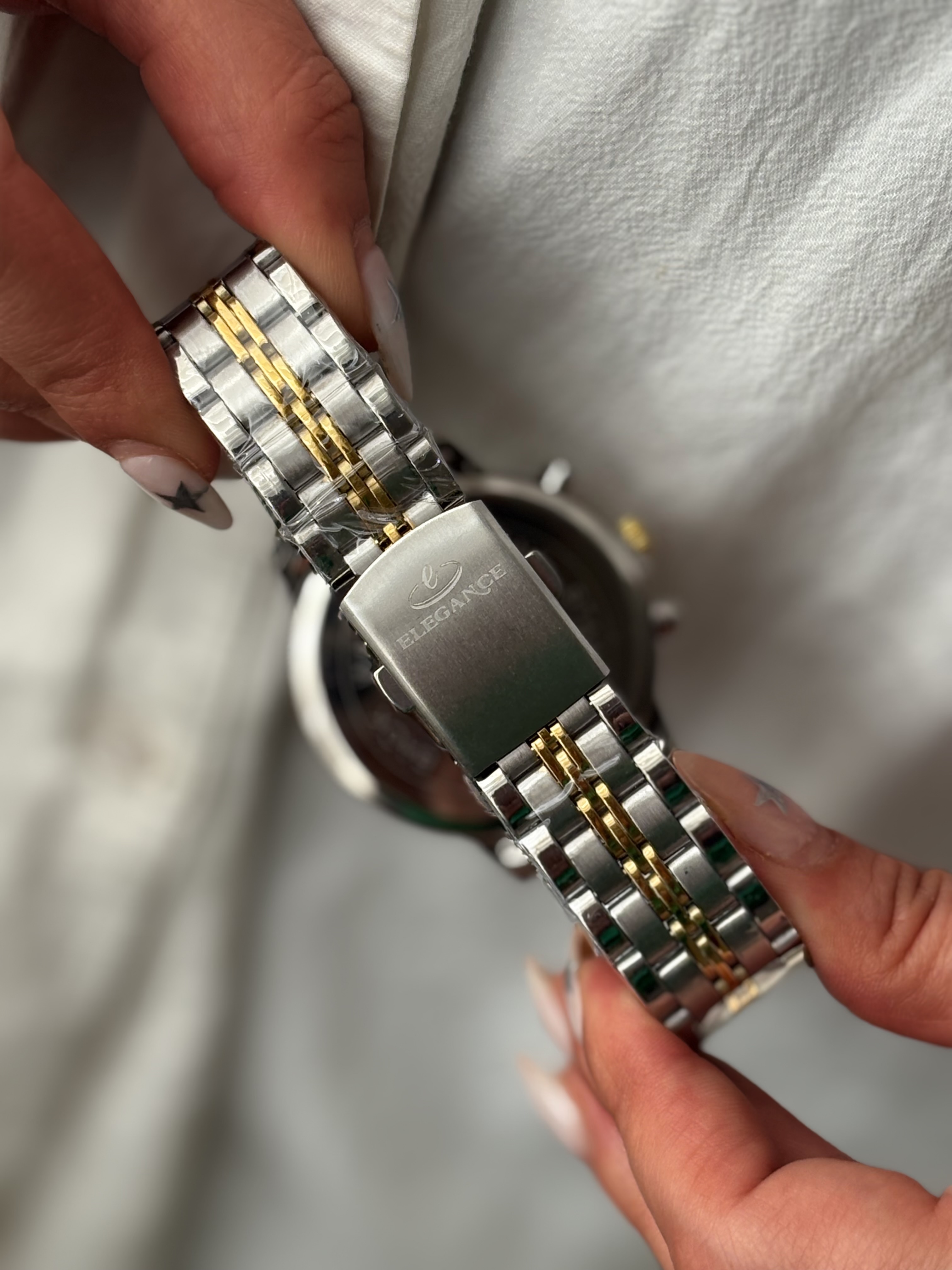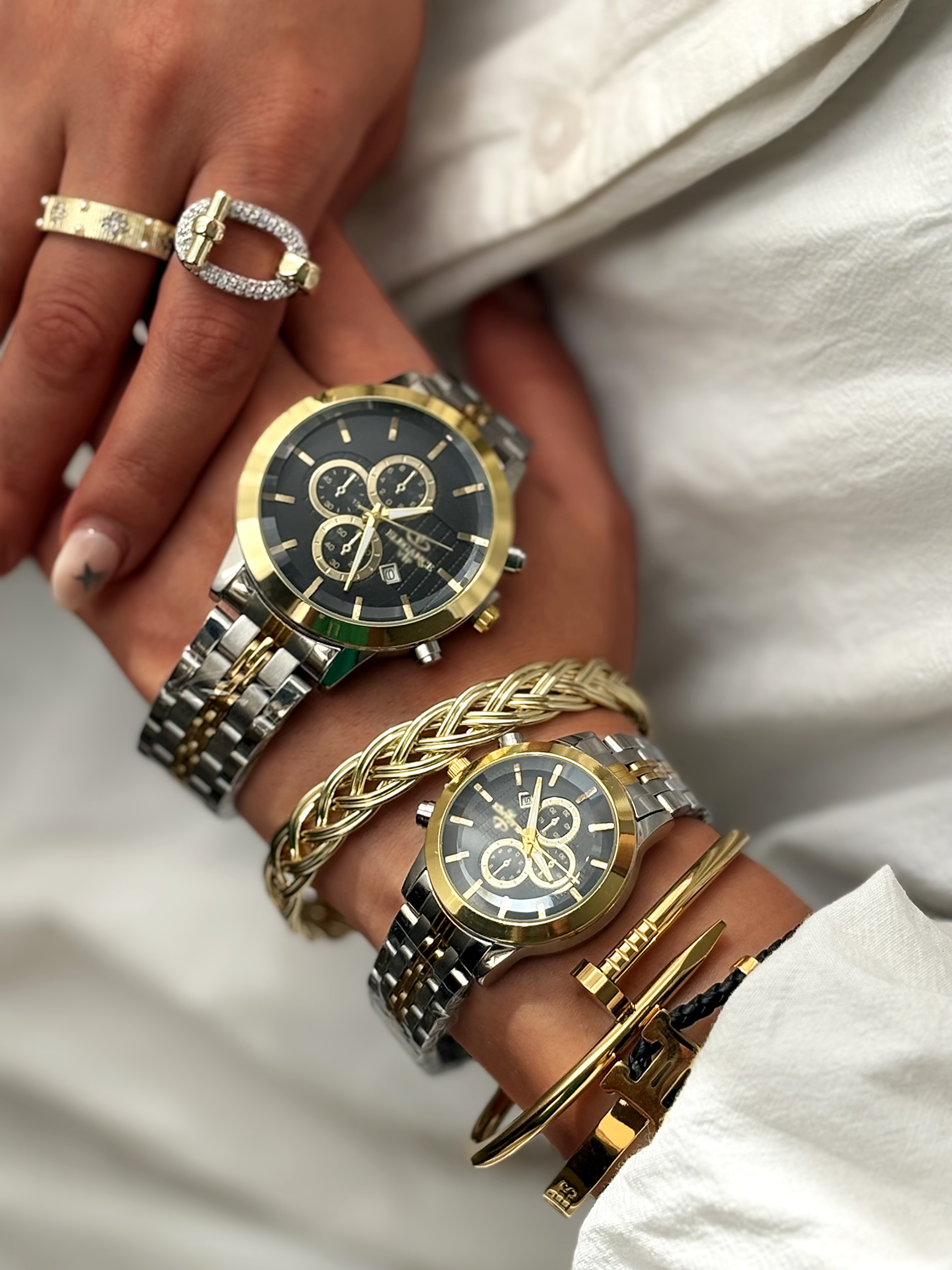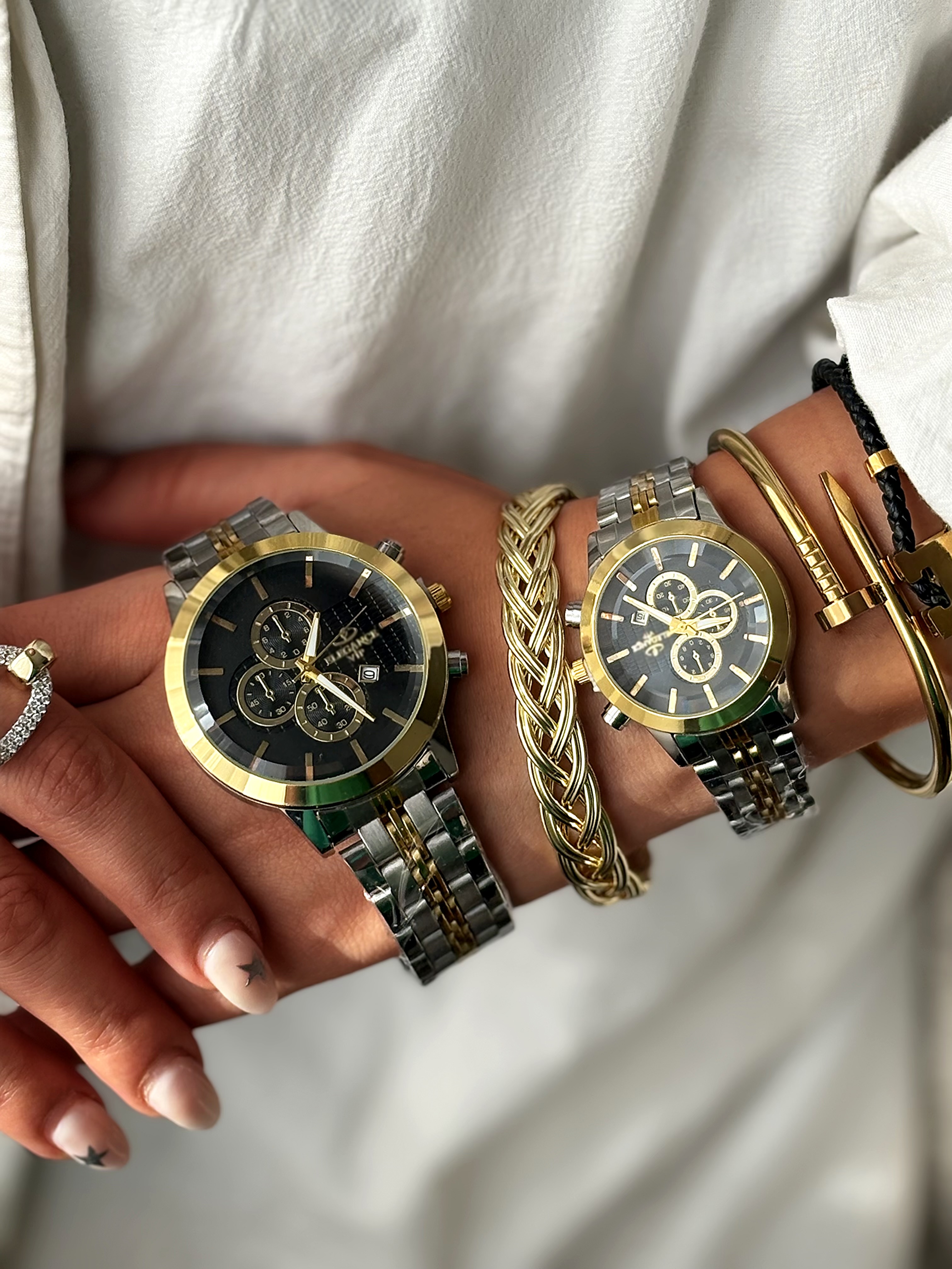 دستهبندی: ساعت ستجنس: استیلروزشمار: داردضد آب: مقاوم در برابر پاشش آبسایز صفحه: مردانه قطر ۴.۵ سانت، زنانه قطر ۳.۵ سانتطول بند : مردانه ۲۴ سانت، زنانه ۲۳ سانت با احتساب صفحهنوع قفل : کلیپسینوع موومنت : کوارتز(باتری)نمایش بیشتر