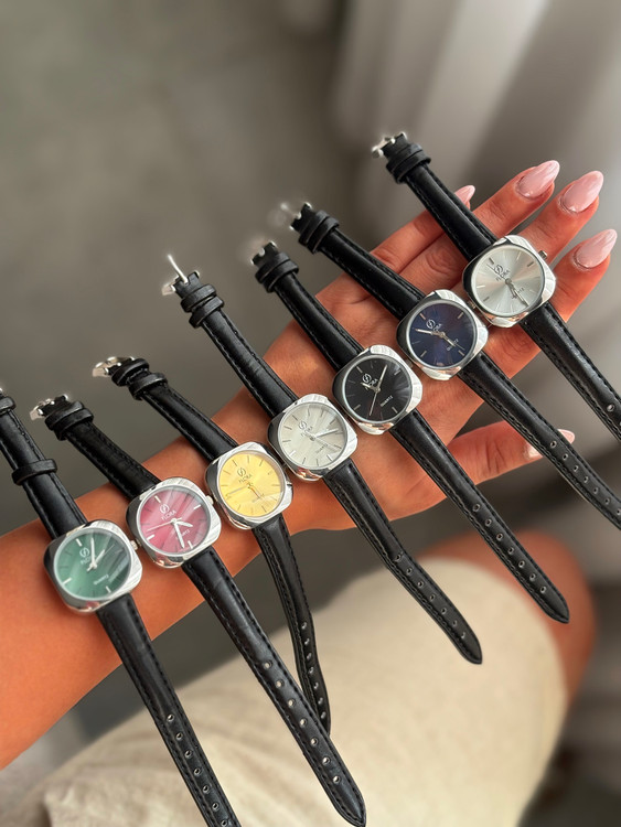 ساعت مچی زنانه فلورا با بند چرمی مشکی و قاب استیل براق، در رنگهای متنوع صفحه از جمله سبز، صورتی، زرد، نقرهای و سرمهای عرضه میشود. طراحی کلاسیک و وزن سبک آن، ترکیبی از زیبایی و راحتی را ارائه میدهد. دارای موتور دقیق، مقاوم در برابر رطوبت و مناسب استایلهای روزمره و رسمی.