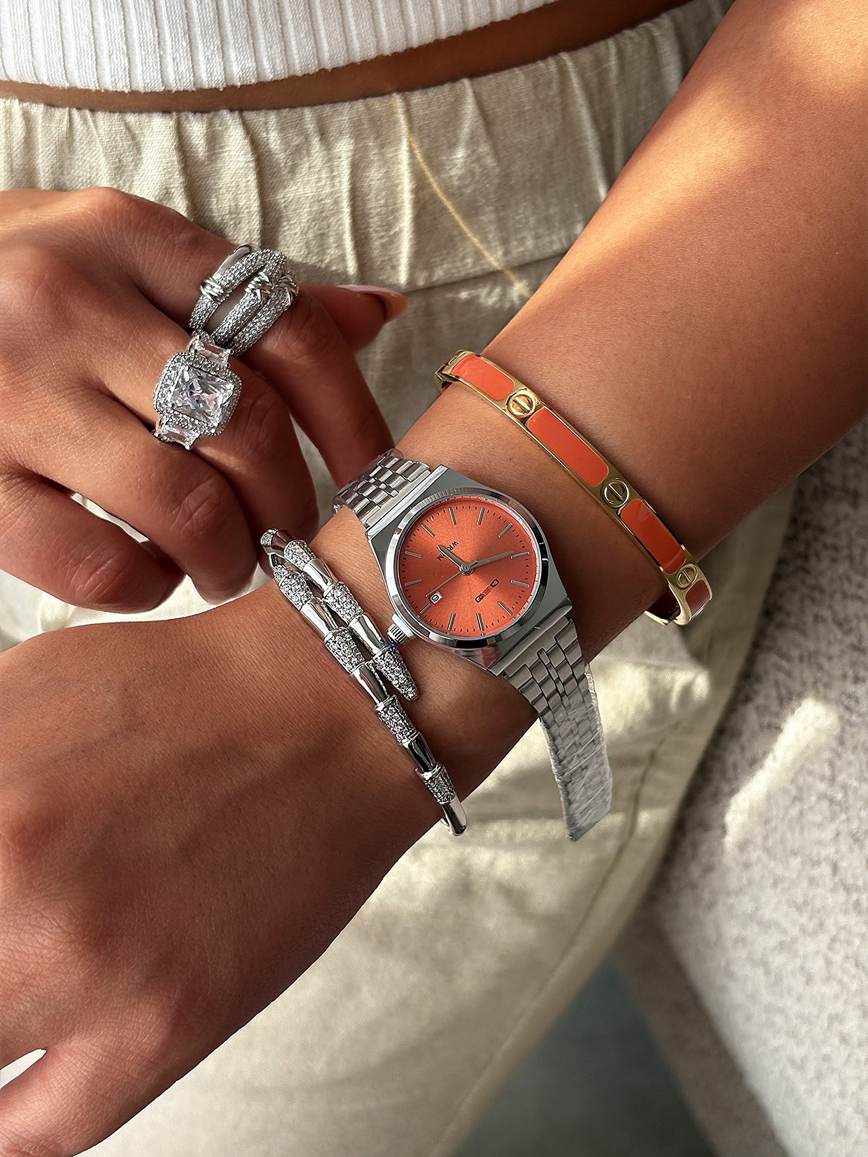 ساعت مچی زنانه کاسیو با طراحی ظریف و بند استیل ضد زنگ، در رنگهای خاصی مانند نقرهای، سبز، صورتی، آبی و نارنجی عرضه میشود. ترکیب زیبایی و دوام، این ساعت را به گزینهای ایدهآل برای استایل روزمره و مجلسی تبدیل کرده است. سبک، مقاوم در برابر رطوبت و دارای موتور دقیق کوارتز.