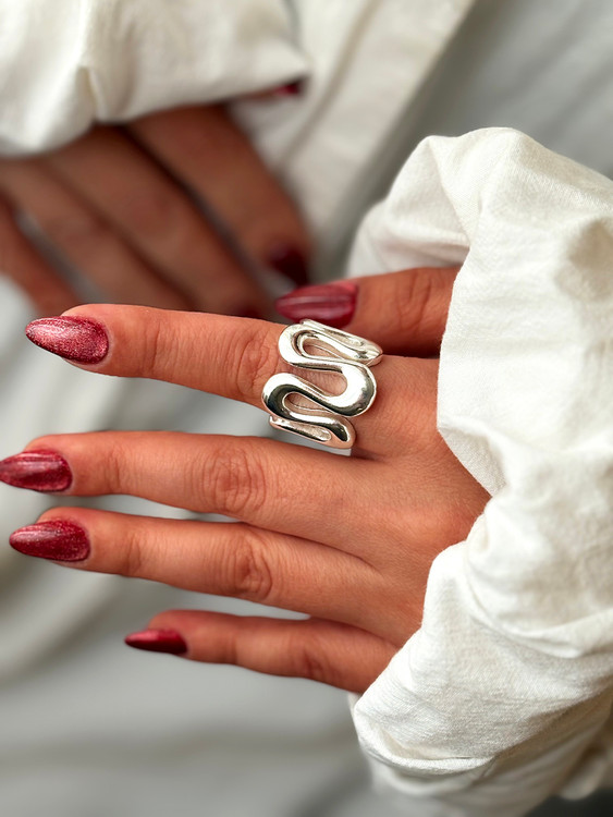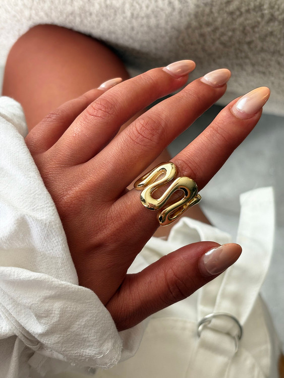 انگشتر طلایی مدرن با طراحی خاص و موجدار، انتخابی جسورانه برای استایلهای مینیمال و شیک است. این انگشتر با سطح براق و فرم منحصربهفرد خود، جلوهای لوکس و متفاوت به دستان شما میبخشد. مناسب برای استفاده روزانه یا استایلهای مجلسی، ترکیبی از سادگی و اصالت را به همراه دارد و نمادی از اعتمادبهنفس و درخشش است.